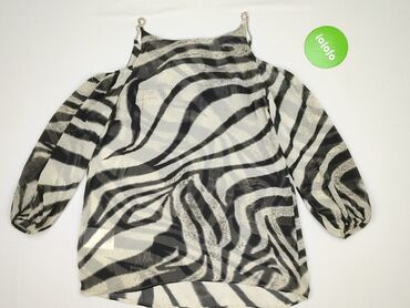 Bluzka damska AMISU z nadrukiem w panterkę. - Fason: dopasowany, długość do bioder - Dekolt: szeroki, zaokrąglony - Rękaw: 3/4, marszczone bufki na ramionach - Wzór: panterka w odcieniach czerni i...