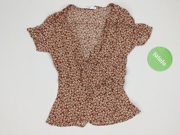 Short sleeveKrótka bluzka damska MNG Basics z dekoltem w kształcie litery V, wykonana w 100% z wiskozy. Materiał w kolorze brązowym zdobi biały kwiatowy wzór. Rękawy są krótkie i wykończone falbankami, a u dołu znajduje się wiązanie, które pozwala na dopasowanie. Idealna na co dzień, zapewnia komfort noszenia.