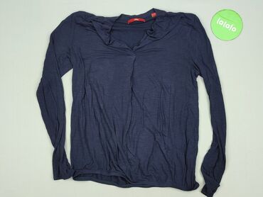 Bluzka damska marki s.Oliver w granatowo-biały wzór kwiatowy. Charakteryzuje się dekoltem w kształcie litery V, zapięciem na guzik, a także rękawami 3/4. Model z marszczeniami po bokach i asymetryc...