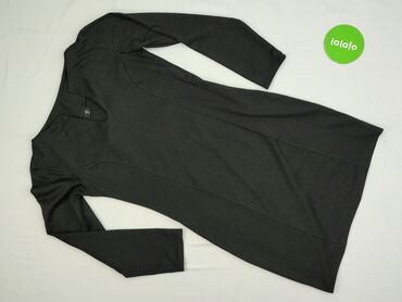 Sukienka damska z długim rękawem, kolor czarny/grafitowy. - Krój: dopasowany, długość przed kolano. - Dekolt: okrągły z trójkątną wstawką z półprzezroczystej siateczki z przodu. - Materiał: 95% pol...