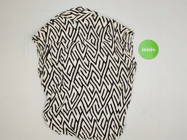 Damska koszula/bluzka z krótkim rękawem - Kolor: biało‑czarna - Wzór: duże kwiaty i geometryczne motywy - Fason: lekko taliowany, zapinana z przodu na 3 guziki - Kołnierz: klasyczny, wykładany - R...