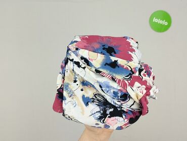 - Wzór i kolory: wielobarwny nadruk w kwiaty i abstrakcyjne plamy; dominują odcienie różu, granatu, czerni, błękitu i écru