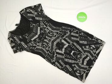 Sukienka H&M, rozmiar EUR 38 (US/CA 8, CN 165/88A, MX 8). - Krój: dopasowana, bez rękawów, długość za kolano. - Wzór: czarno-białe duże kwiaty z kontrastowymi poziomymi pasami; boki w czerni optyc...