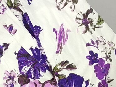 - Wzór: biały materiał w fioletowo‑liliowe kwiaty z zielonymi akcentami