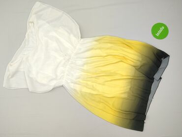 Sukienka damska w kwiaty – rozmiar S - Kolor: intensywnie żółty z niebiesko-białym, drobnym nadrukiem kwiatowym - Fason: kopertowy przód z wiązaniem w talii, krótkie rękawy z lekką falbanką - Dół:...