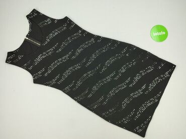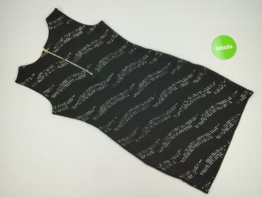 Sukienka damska bez rękawów, mini, ołówkowa. - Kolor: czarny z drobnym, wielokolorowym połyskiem (metaliczna nitka). - Krój: dopasowany, okrągły dekolt, długość przed kolano. - Zapięcie: kryty suwa...