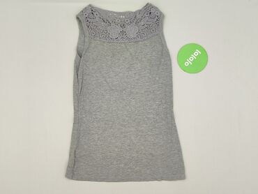 Szara bluzka damska bez rękawów z koronką - Krój: luźny, rozszerzany ku dołowi; tył dłuższy, lekko asymetryczny - Dekolt: okrągły - Plecy: wstawka z półprzezroczystej siateczki z kwiatowym haftem ...