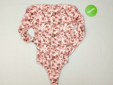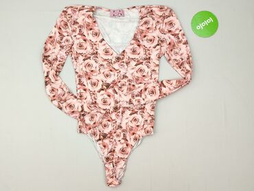 Body BOOHOO z długim rękawem - Model: body z dekoltem w kształcie litery V - Wzór: różowe, kwiatowe nadruki na jasnoróżowym/bladym tle - Rękawy: długie, bufiaste z marszczeniem na ramionach i szer...