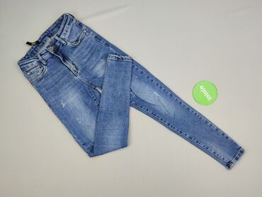 Jeansy damskie M.Sara, rozmiar XS. - Fason: rurki/skinny z wysokim stanem - Pas: elastyczna guma z karbowanym wykończeniem (komfortowe dopasowanie) - Zapięcie: dekoracyjny rząd metalowych guzików ...Condition: