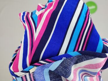 - Wzór: wielokolorowe paski (granat, róż, błękit, biel)