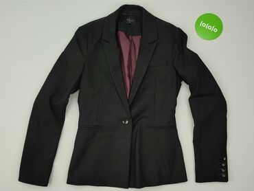 Marynarka damska Mohito - Marka: Mohito - Rozmiar z metki: 40 - Kolor: czarny - Krój: taliowany, z wąskimi klapami bez zapięcia z przodu (otwarta) - Podszewka: bordowa - Kieszenie: dwie przednie w...