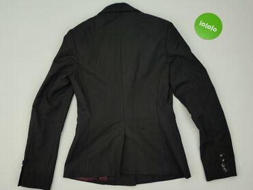 Żakiet damski Mohito - Kolor: czarny - Rozmiar: S (metka widoczna na zdjęciu) - Fason: dwurzędowy, dopasowany w talii - Zapięcie: ozdobne złote guziki z przodu (4 sztuki) + dekoracyjne guziki - Ko...Condition:
