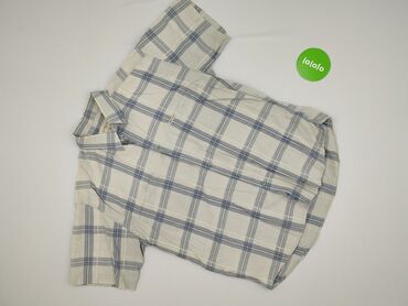 Męska koszula z krótkim rękawem w kratę - Klasyczny kołnierzyk, zapięcie na guziki na całej długości - Dwa naszywane kieszenie na piersi z patkami - Wzór: drobna kratka w odcieniach błękitu i szar...