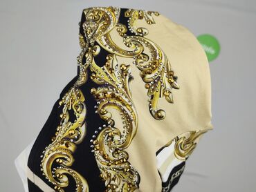 - Wzór: bogaty barokowy print w odcieniach beżu, czerni, bieli i złota, uzupełniony błyszczącymi aplikacjami (cyrkonie i cekiny)
