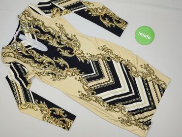 Sukienka damska z długim rękawem, wzór barokowy - Fason: dopasowana, z marszczeniami na przodzie i tyle; dół z troczkami do regulacji długości/rozcięć po bokach - Rękawy: długie - Dekolt: w kształ...Condition: