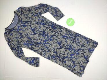 Sukienka dzianinowa Å, rozmiar S (36/38) - Fason: prosta, luźna, z krótkim rękawem; długość midi; dół zaokrąglony - Kolor/wzór: melanż szaro-czarny - Dekolt: okrągły - Materiał: 65% poliester, 35%...