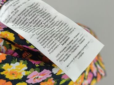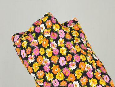 - Wzór: gęsty kwiatowy print na czarnym tle – odcienie pomarańczu, żółci, różu i bieli.