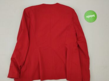 Damska marynarka w kolorze intensywnej czerwieni. - Krój: taliowany, jednorzędowy na 2 guziki - Kołnierz: klapy klasyczne - Rękawy: długie; mankiety z podszewką w biało‑szare paski (można podwinąć...Condition: