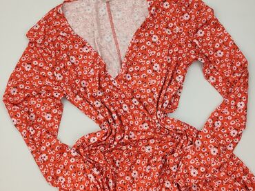 Sukienka ASOS - Kolor: intensywny koralowo‑czerwony z drobnym, białoróżowym kwiatowym printem - Krój: rozkloszowana, z odcięciem i delikatnym marszczeniem w talii; dół z falbaną - Dekolt: w ks...