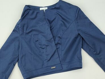 Żakiet damski Jolmar - Kolor: granatowy - Krój: krótki, z przodem na zakładkę (asymetryczne wykończenie), prosta stójka pod szyją - Rękawy: 3/4 - Rozmiar z metki: 38 - Materiał: gładka tkanina o d...