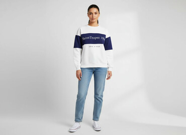 - Fason: klasyczna bluza z okrągłym dekoltem, długim rękawem i ściągaczami przy mankietach oraz na dole