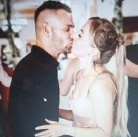 Czerwona sukienka damska marki Astry, wykonana z satynowego materiału z czarnym wzorem roślinnym. Sukienka posiada cienkie ramiączka i jest wykończona u dołu czarnym tiulem, co nadaje jej elegancki...