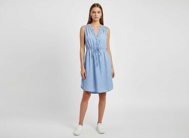 Lekka sukienka bez rękawów w kolorze jasnego denimu/blekitnym chambray.