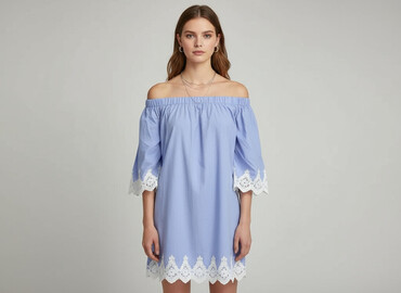 Sukienka dżinsowa damska, utrzymana w jasnoniebieskim kolorze. Charakteryzuje się koronkową górą, która dodaje jej lekkości. Fason bez rękawów sprawia, że jest to odpowiedni wybór na cieplejsze dni...