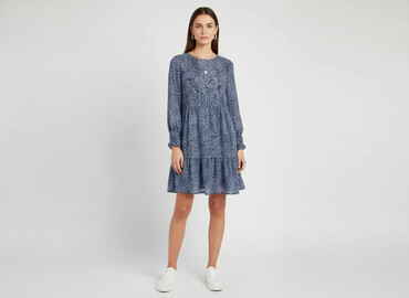 Sukienka damska z długim rękawem, wzorzysta