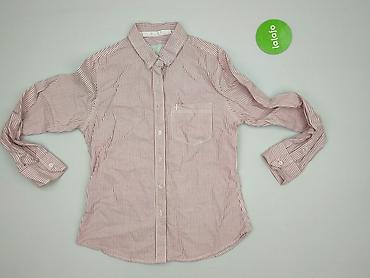 Koszula damska H&M Divided - Rozmiar: M - Fason: lekko taliowany, z kołnierzykiem, krótki rękaw - Zapięcie: na guziki (różowe/łososiowe) - Kolor/wzór: ceglasty/różowy w drobne, białe prążki - Kies...