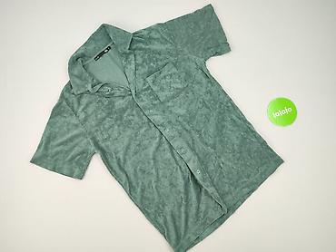 Koszula XMAIL, rozmiar M, damska - Krój: koszula z krótkim rękawem, zapinana na guziki - Wzór: roślinny/tropikalny print na szaro‑zielonym tle - Kołnierzyk klasyczny - Dół lekko marszczony z boku ...