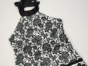 - Krój: halter neck – wiązanie na szyi z szeroką, czarną tasiemką; lekko rozszerzana ku dołowi.