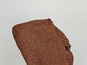 Sweter damski, włoska produkcja, kolor ciepły karmel/rdzawy. - Fason: dzianinowy pulower z efektem skręcenia/kokardy z przodu; dekolt w kształcie litery V (z przodu i z tyłu). - Rękawy: długie, pó...