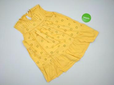 Zwiewna sukienka/tunika damska - Kolor: pastelowy żółty - Wzór: duży kwiatowy print w odcieniach niebieskiego i zieleni, skupiony u dołu - Krój: luźny, lekko rozszerzany; rękawy do łokcia - Dekolt...