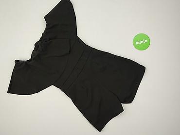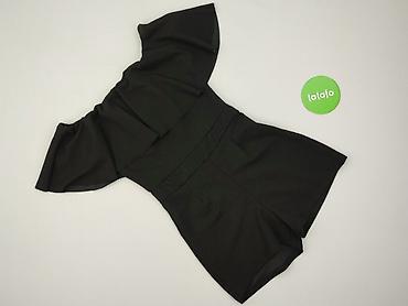 - Fason: krótki kombinezon (shorts), dopasowana talia z szerokim pasem, rozszerzana góra z efektowną falbaną