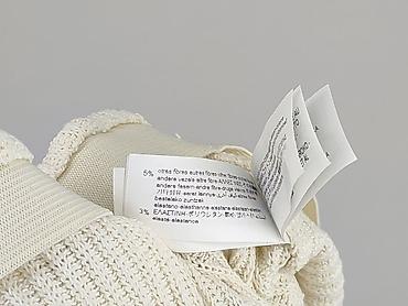 - Materiał: mieszanka włókien z dodatkiem elastanu (z metki m.in. 3% elastan; elastyczna taśma/ściągacz u góry dla lepszego trzymania)