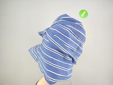 Dodatkowo w komplecie kapelusz w tym samym wzorze (niebieskie tło w białe paski) – szerokie, miękkie rondo, opaska z tego samego materiału. Idealny zestaw na wakacje, spacery i letnie wyjścia.
