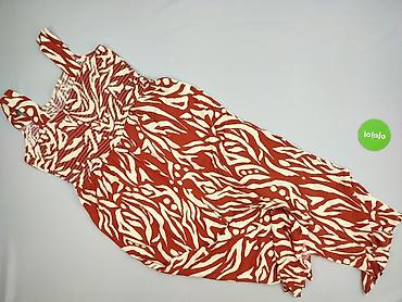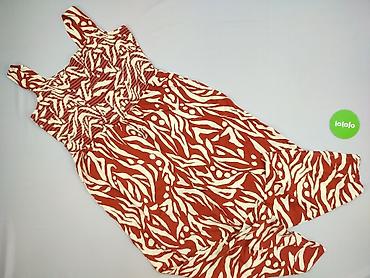Sukienka damska George na ramiączkach – letnia, midi/maxi (w zależności od wzrostu), w efektowny roślinno-zwierzęcy print w odcieniach ceglastoczerwonym i ecru.