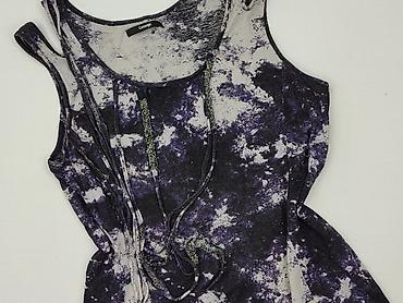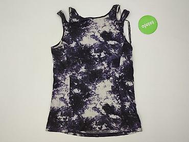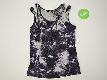 Top damski George – bez rękawów, z ciekawym nadrukiem typu tie-dye/marmurkowym w odcieniach czerni, fioletu i bieli. Okrągły dekolt, podwójne ramiączka oraz dopinany sznureczek/sznurek-dekor z metalicznym zdobieniem przy dekolcie. Miękka, elastyczna dzianina zapewniająca komfort.