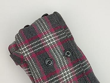 - Wzór: szkocka krata w odcieniach szarości, bieli i malinowego