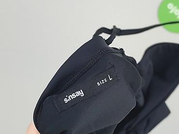 Czarna bluzka damska Sinsay - Rozmiar: L - Fason: luźny, z krótkim rękawem typu kimono - Dekolt: okrągły - Tył: efektowne marszczenie/splot tworzący węzeł - Materiał: 92% poliester, 8% elastan – t...