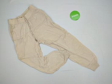 Luźne spodnie damskie typu harem/jogger w kolorze beżowym. - Wysoki, szeroki pas z gumą i troczkiem do regulacji obwodu - Nogawki zwężane ku dołowi, zakończone elastycznymi ściągaczami - Miękki, c...