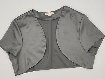 - Krój: otwarty przód z zaokrąglonymi połami, krótkie rękawy, prosta linia pleców