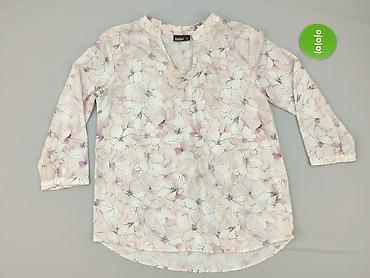 Bluzka damska JANINA - Rozmiar: S (z metki) - Krój: klasyczny, z długim rękawem i okrągłym dekoltem - Wzór: kwiatowy na jasnoszarym tle; odcienie fioletu, lawendy, niebieskiego i zieleni - Materia...