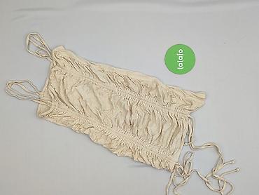 - Fason: dopasowany, z licznymi marszczeniami z przodu i po bokach; cienkie podwójne ramiączka; wiązania po bokach umożliwiają regulację długości i stopnia marszczenia