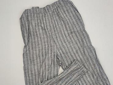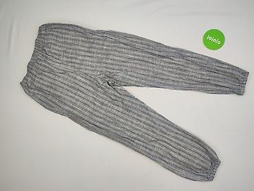 Damskie spodnie w paski - Krój: proste, zwężane nogawki - Talia: elastyczna (gumka) – wygodne dopasowanie bez zapięcia - Wzór: drobne, pionowe paseczki w odcieniach granatu/szarości - Materiał: lek...Stan: