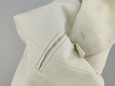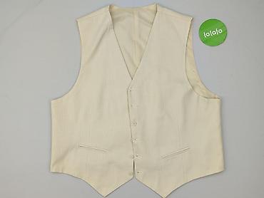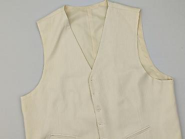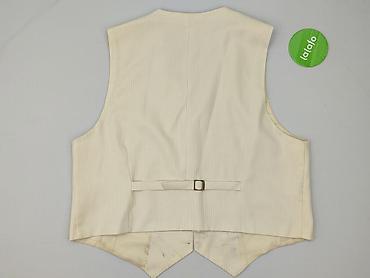 Męska kamizelka garniturowa w kolorze ecru/kremowym z delikatnym, eleganckim prążkiem w jodełkę.