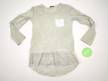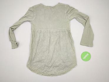 Zielona bluzka damska z długim rękawem - Krój: luźniejszy, delikatnie rozkloszowany od linii biustu, zaokrąglony dół - Dekolt: szeroki, okrągły - Zapięcie: krótka listwa z trzema jasnymi guzikami ...Stan: