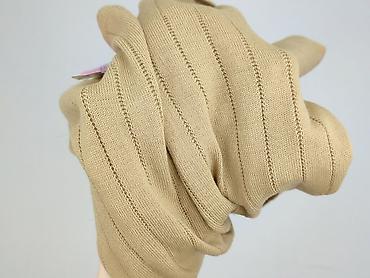 Damski sweter dzianinowy, kolor camel/karmelowy. - Fason: luźny, z obniżoną linią ramion; przód/tył z charakterystycznym trójkątnym dekoltem w kształcie litery V i przeszyciem pośrodku - Długość: ...