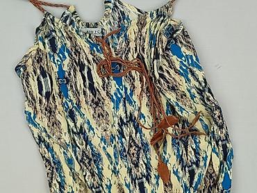 Sukienka damska S/M, 100% wiskoza - Krój: luźniejsza, z wiązaniem w pasie (regulacja obwodu), krótkie rękawy. - Dekolt: w kształcie litery V, z ozdobnymi troczkami przy karku. - Długość: mini/prze...